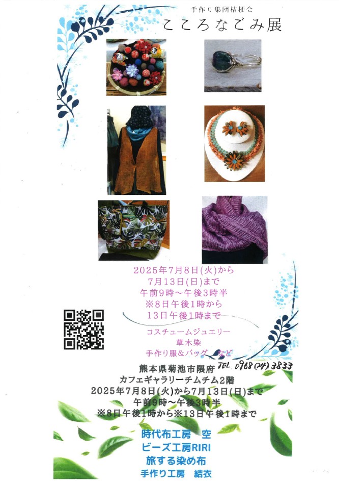【日時】2025年7月8日~13日まで 午前9時~午後3時半 【場所】カフェギャラリーチムチム