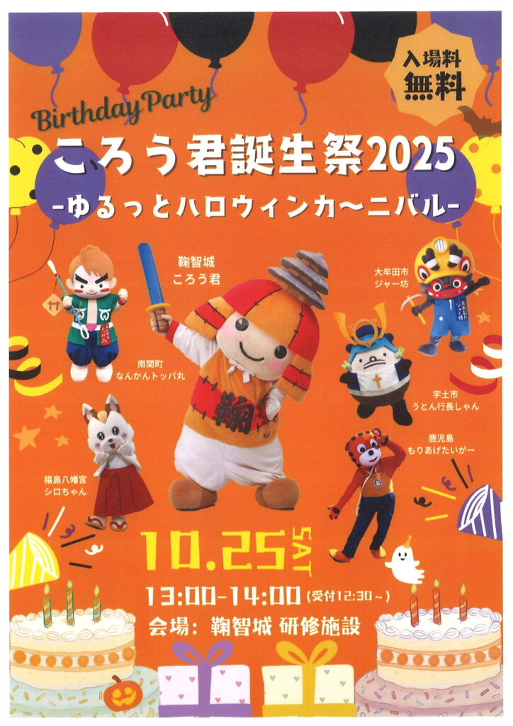 「ころう君誕生祭2025~ゆるっとハロウィンカーニバル~」が歴史公園鞠智城 研修施設で開催されます。