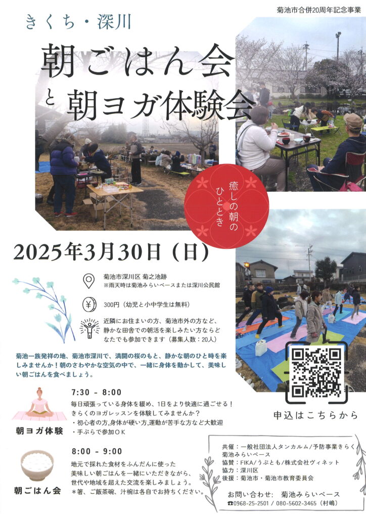 菊池一族発祥の地、菊池市深川で朝ヨガ体験と朝ごはん会が開催されます。