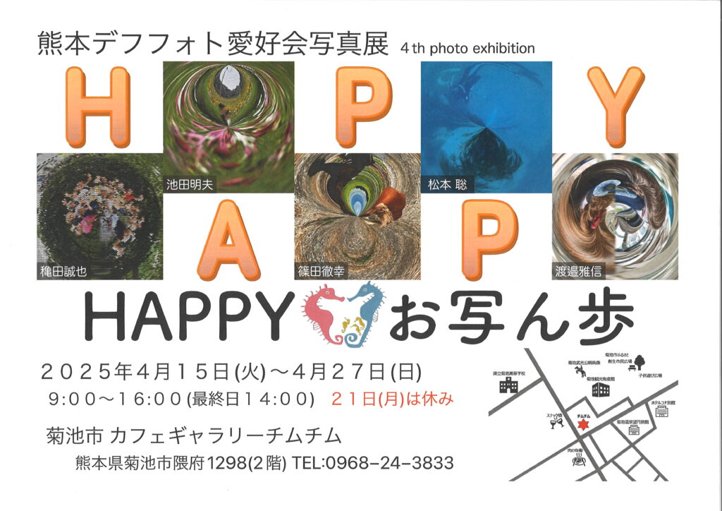 熊本デフフォト愛好会写真展『HAPPY お写ん歩』が 菊池市カフェギャラリーチムチムで開催されます。